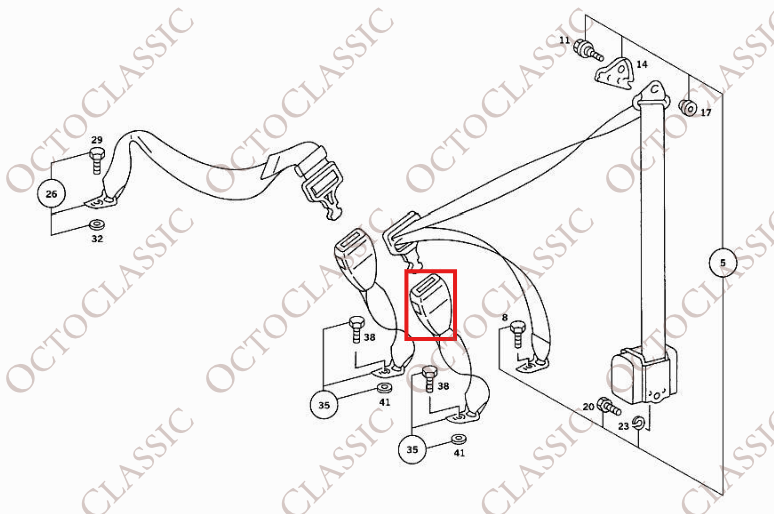 Mercedes R107 Seat Belt Buckle Rear Black A1238600469