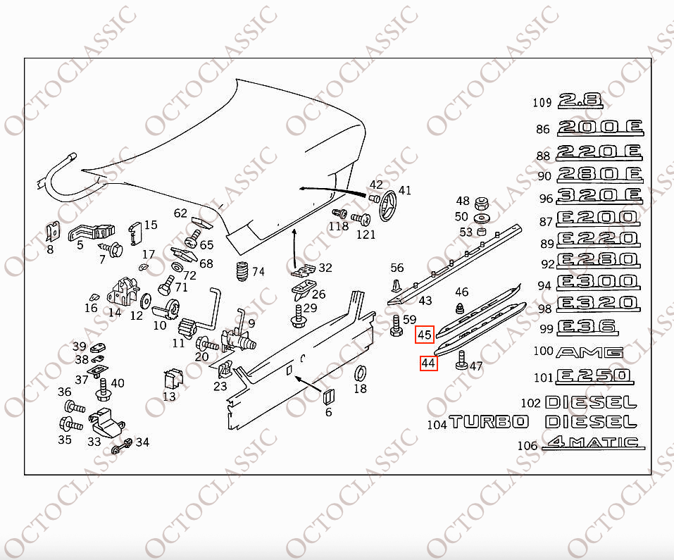 Mercedes W124 Trunk Lid Grip Trim Set A1247580096 / 1247500293